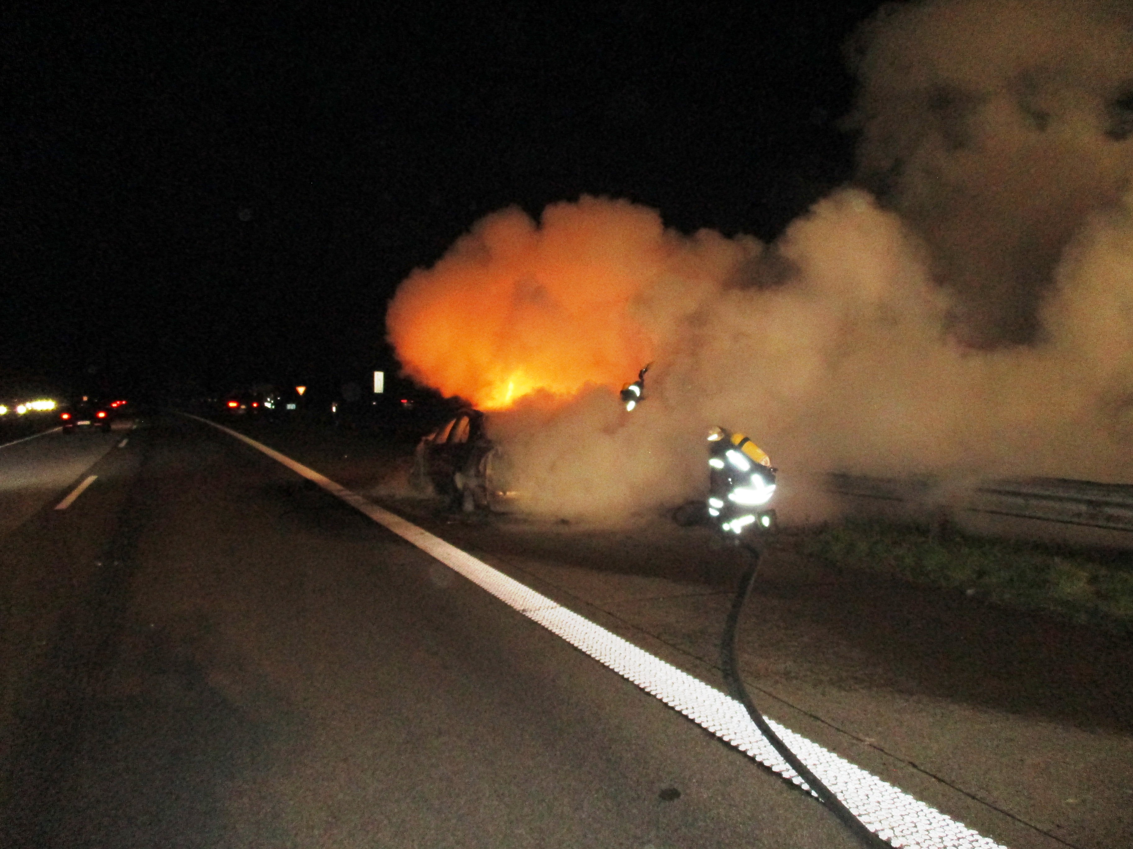 Auf der Autobahn A 52, Höhe Autobahnkreuz Neersen, geriet ein Pkw in Brand. Der bei Eintreffen in Vollbrand stehende Pkw wurde durch einen Trupp unter Atemschutz gelöscht.