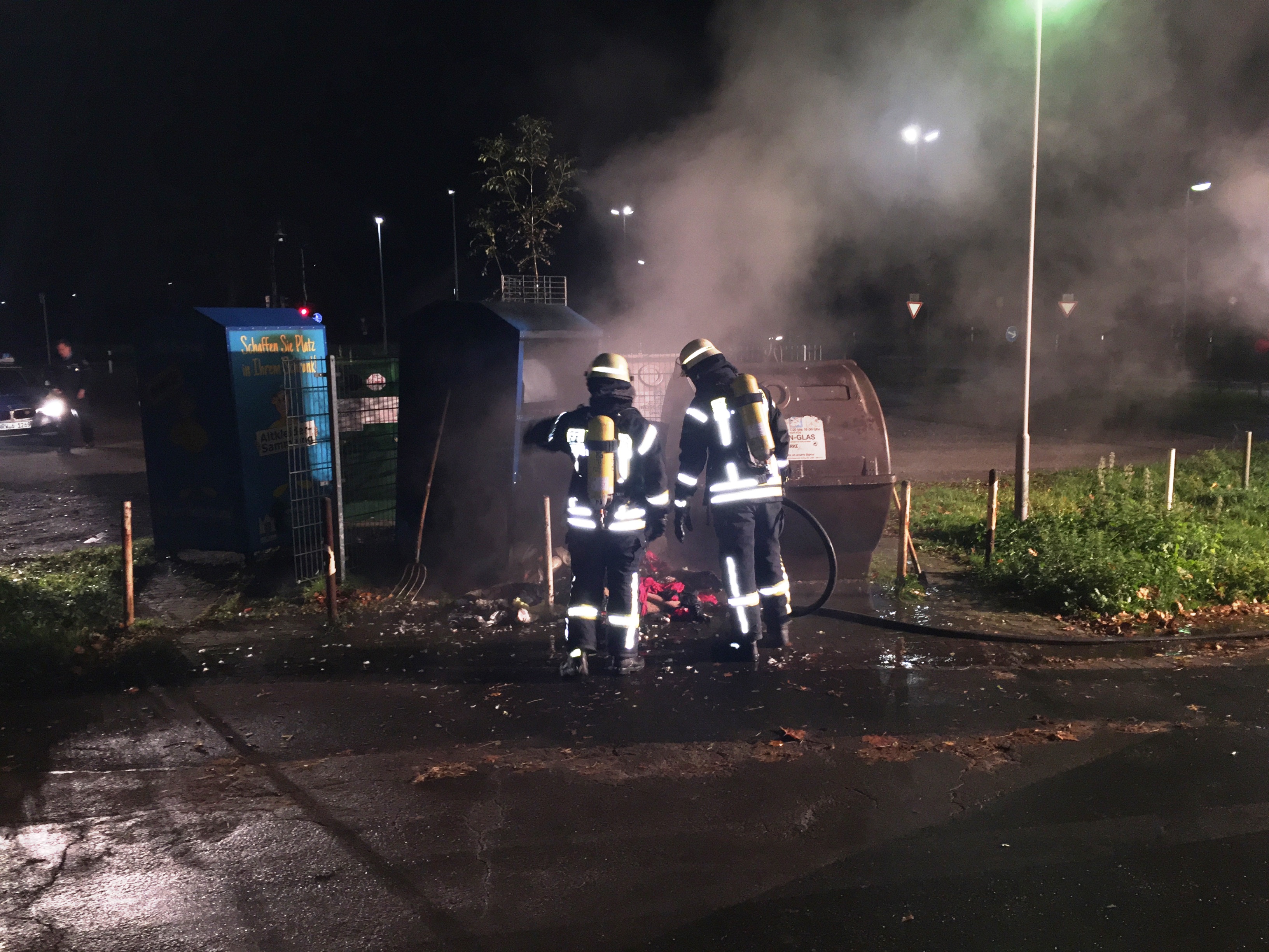 Aus ungeklärter Ursache brannte am Mittwochmorgen der Inhalt eines Alkleidercontainers.