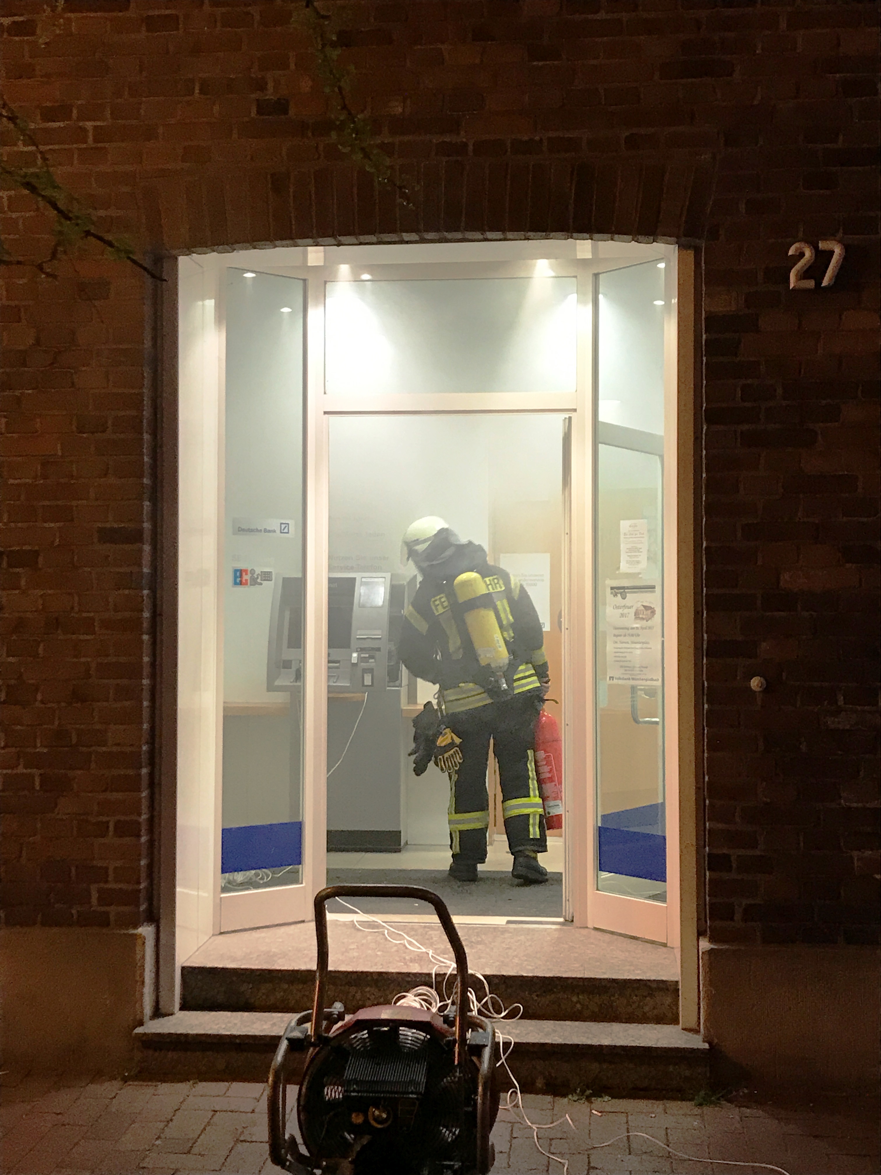 Im weiteren Einsatzverlauf wurde dann im Geldausgabeautomat mittels CO2-Löscher ein kleinerer Entstehungsbrand gelöscht.