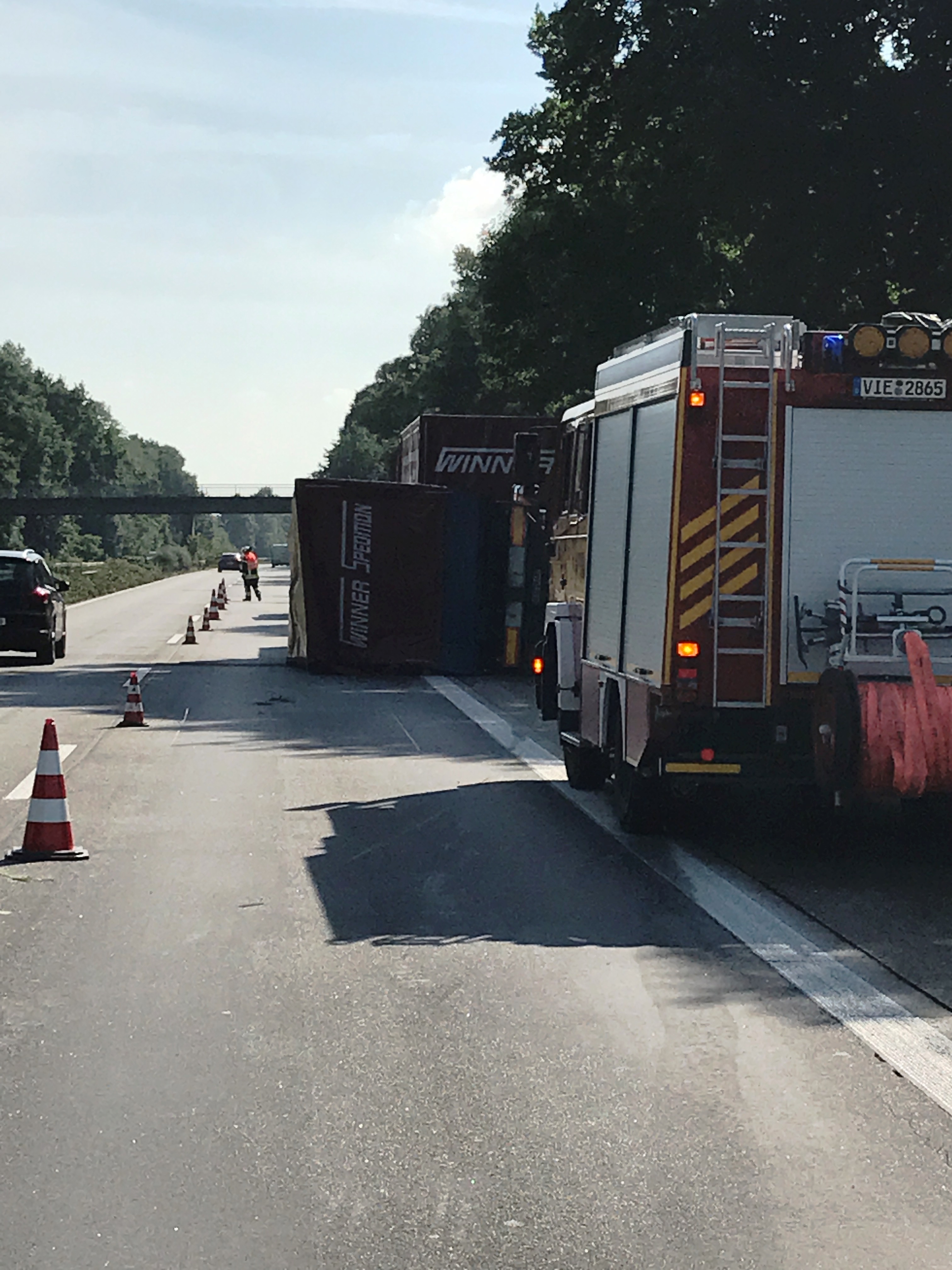 Nach einem Verkehrsunfall auf der A 52 Höhe Kaarster See wurde bis zum Eintreffen der Autobahnpolizei die Unfallstelle abgesichert.