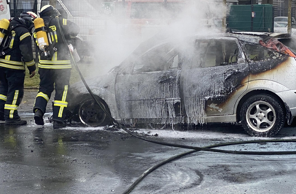 Bei Eintreffen der Feuerwehr brannte der PKW in voller Ausdehnung. Ein Trupp ging unter Atemschutz zur Brandbekämpfung vor. Im weiteren Verlauf wurde der PKW mit Schaum gelöscht. Im Anschluss wurde die Einsatzstelle an die Polizei übergeben.