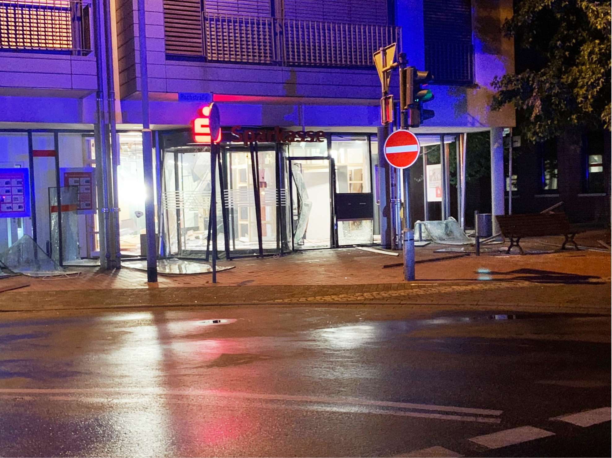 Am frühen Morgen des 24. Juli erschütterte eine gewaltige Explosion den Ortskern von Schiefbahn, nachdem unbekannte Täter in der Filiale der Sparkasse Krefeld auf der Hochstraße einne Sprengsatz haben hochgehen lassen.